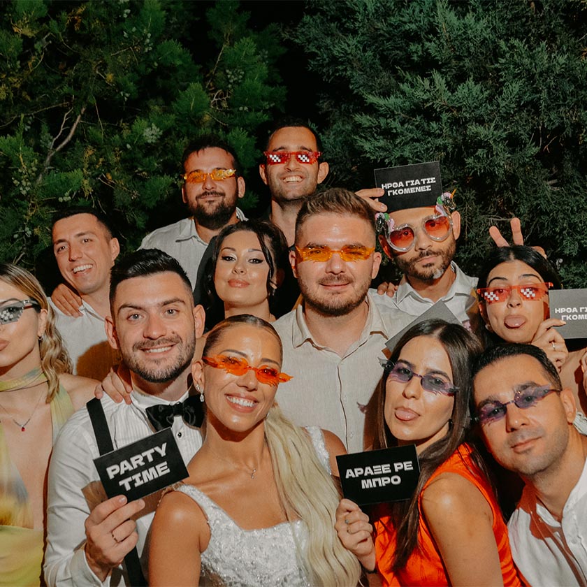 Το Photobooth προσφέρει άμεσες εκτυπώσεις φωτογραφιών ή digital στιγμιότυπα, ενώ το 360 Video Booth δημιουργεί εντυπωσιακά, κινηματογραφικά βίντεο όπου οι καλεσμένοι κινούνται και η κάμερα περιστρέφεται γύρω τους — τέλειο για social media!